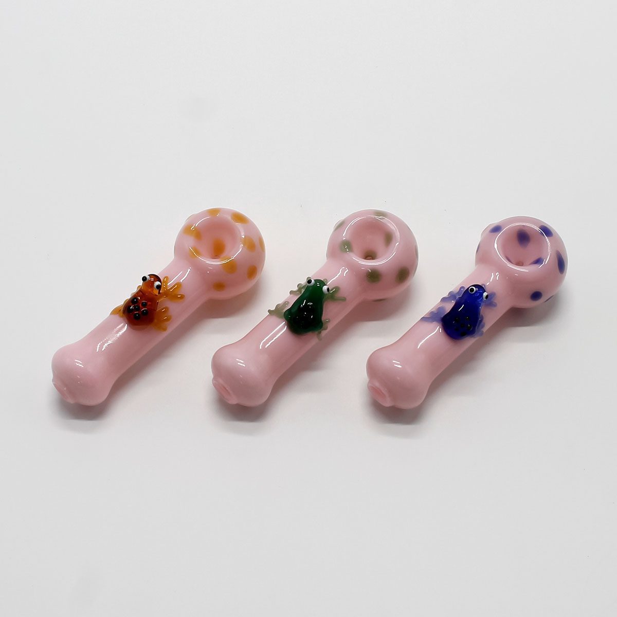 This charming 10cm pipe is sure to stand out. It’s made from durable pink glass and features a cute frog design complemented by colorful spots. Built for reliability, this piece combines fun aesthetics with quality construction, perfect for use as one of our glass oil burner pipes for smoking.